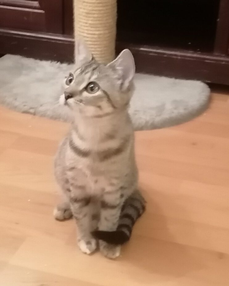ANNIE brauchte etwas mehr Zeit, um Vertrauen aufzubauen. Sie singt dafür in den höchsten Tönen und sehr ausdauernd, wenn sie der Pflegemama ansichtig wird. Vermutlich ist das die Aufforderung, den Futternapf endlich aufzufüllen, denn Essen ist für ANNIE Lebenszweck. Sie genießt inzwischen aber auch Streicheleinheiten sehr und fordert sie wie LENNOX sogar ein. Beide Tigerchen